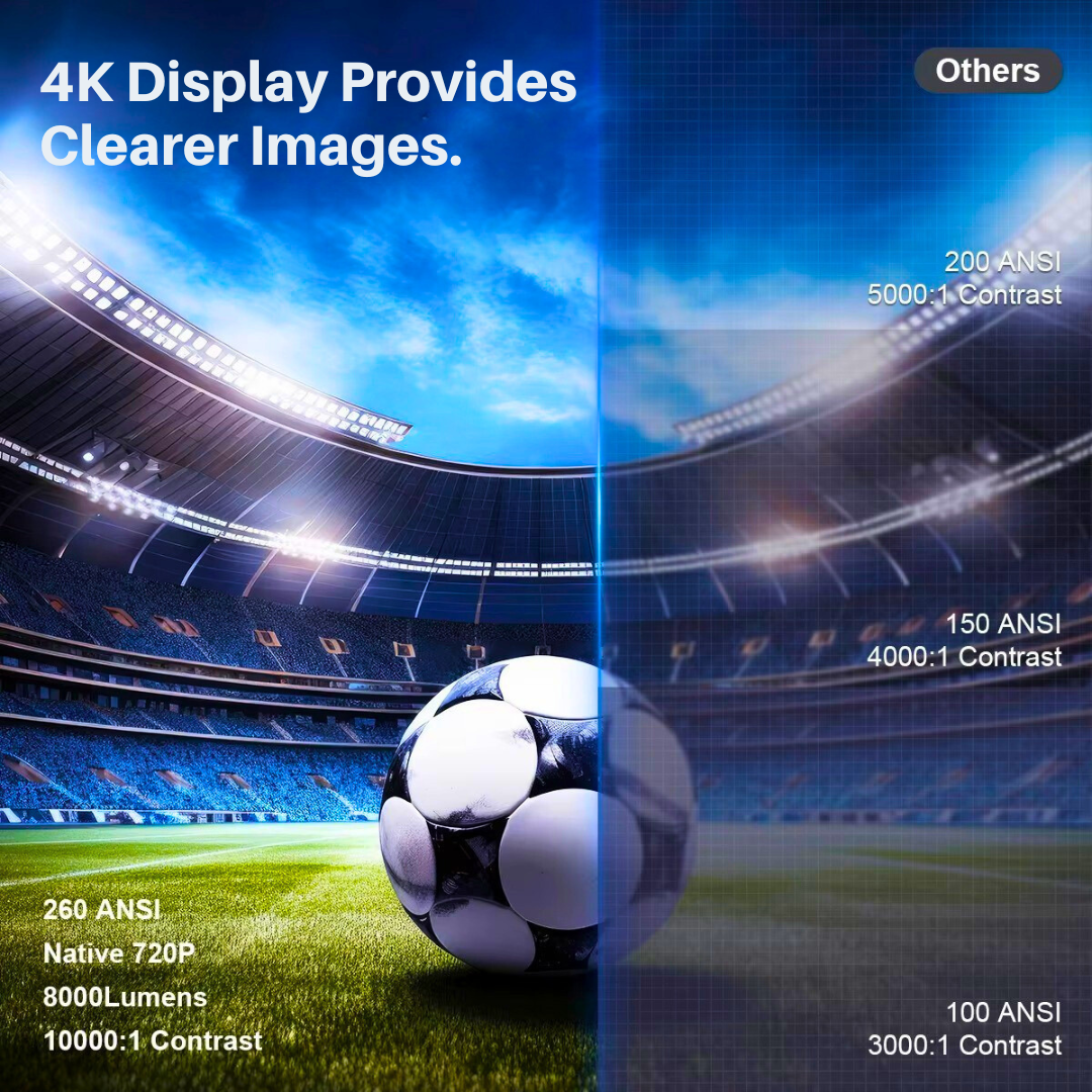 A: Yes, the Portable Projector supports 4K decoding, delivering crystal-clear visuals and vibrant details for a premium viewing experience. Whether you're watching movies, sports, or gaming, the 4K capability ensures stunning image quality every time.